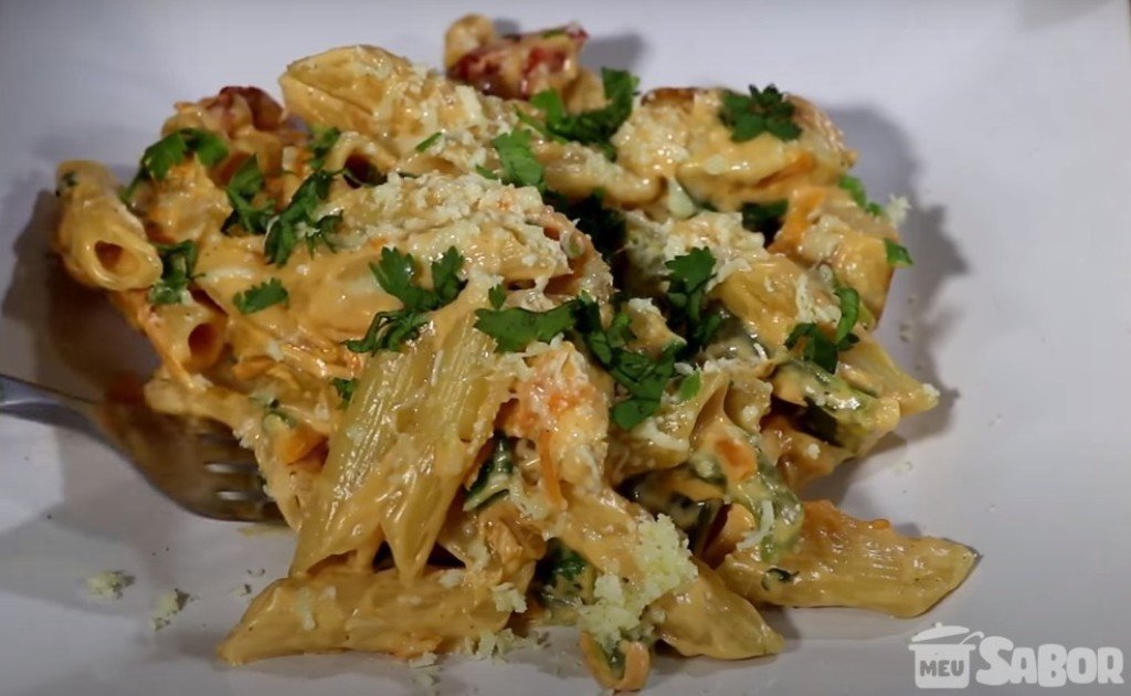Pesquisar Pesquisar Close this search box. Pesquisar Pesquisar Close this search box. Modo de Preparo Em uma panela aqueça o azeite e doure o alho. Junte o molho de tomate, o requeijão e o creme de leite. Tempere com sal e pimenta. Deixe no fogo brando até o requeijão derreter. Desligue o fogo e misture a muçarela e o presunto picados. Em um refratário coloque o macarrão, despeje o molho e polvilhe o queijo ralado. Deixe por 20 minutos em forno pré-aquecido. Sirva em seguida. Dicas do Cheff Conte-nos como ficou sua receita, poste fotos, marque e siga-nos no instagram use a #ReceitasMeuSabor. Fonte: Meu Sabor