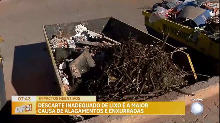 Com o aumento das chuvas nos últimos meses, o Serviço de Limpeza Urbana (SLU) alerta a população para os impactos negativos do descarte inadequado de resíduos nas redes de drenagem do Distrito Federal. Além de principal causa de alagamentos e enxurradas, a prática também acarreta riscos ambientais e propicia a transmissão de doenças, como dengue, zika vírus, febre chikungunya e leptospirose. VEJA TAMBÉM: Inscrições para educador social voluntário no DF começam nesta quarta; veja como se candidatar Governo estuda revogar parte de MP e manter desoneração da folha de pagamento Jornalista Patrícia Lélis é procurada pelo FBI por suspeita de aplicar golpe de R$ 3,4 milhões