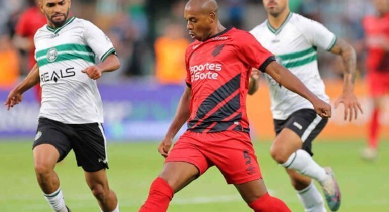 Deu empate no primeiro Atletiba da temporada 2024. Na noite deste domingo (18), Coritiba e Athletico ficaram no 1 a 1 no clássico disputado no Couto Pereira. Mastriani e Matheus Bianqui anotaram os gols. O resultado deixa tudo aberto para a última rodada da primeira fase do Campeonato Paranaense. O Furacão segue na liderança da competição, um ponto à frente do Coxa. As equipes precisarão virar a chave para a disputa da Copa do Brasil. O Coritiba volta a campo na quinta-feira (22), às 20h, em Marabá-PA, contra o Águia em jogo único da primeira fase. Pela rodada final do Estadual, o adversário será o Cascavel, domingo (25), às 16h, no Olímpico Regional. O Athletico, por outro lado, terá a semana inteira para treinos e e no domingo às 16h recebe o São Joseense, na Ligga Arena. O jogo O Coritiba iniciou com uma marcação forte na saída de jogo rubro-negra. Mas isso não impediu a primeira grande oportunidade da partida, com Mastriani após erro de Fransérgio. O goleiro Pedro Morisco fez um milagre. Na segunda chance, Mastriani não vacilou e abriu o placar aos 23 minutos após arrancada de Julimar pela direita. Bento, com uma defesaça, evitou o empate dos donos da casa ao defender chute de Matheus Bianchi. Entretanto, apesar de vacilos na saída de bola, o Athletico evitou grande sustos até os 50 minutos. Isso porque Robson fez ótima jogada até Natanael cruzar para Bianqui deixar tudo igual. Segundo tempo O duelo entre Bento e Bianqui continuou na volta do intevalo, com vantagem para o goleiro rubro-negro. Os técnicos Juan Carlos Osorio e Guto Ferreira promoveram mudanças. O Coxa, porém, seguiu mais imponente e quase virou com um gol contra de Gamarra. O clássico ficou mais aberto na reta final, em razão do cansaço das equipes. O Coxa, que precisava mais do resultado positivo do que o rival, foi mais incisivo nas tentativas, porém Bento se comportou com muita segurança. Assim, o empate permaneceu até o apito final. CORITIBA 1×1 ATHLETICO Campeonato Paranaense – 10ª rodadaLocal: Couto PereiraGols: Mastriani, 23’/1ºT (0-1); Matheus Bianqui, 50’/1ºT (1-1)CORITIBA: Pedro Morisco; Natanael, Maurício Antônio, Bruno Melo e Jamerson; Fransérgio (Arílson), Vini Paulista (Geovane Meurer), Matheus Bianqui (Sebastián Gómez) e Matheus Frizzo; Robson e Figueiredo. Técnico: Guto FerreiraATHLETICO: Bento; Kaique Rocha, Thiago Heleno e Gamarra; Julimar, Fernandinho, Erick, Felipinho e Canobbio; Pablo (Christian) e Mastriani (Di Yorio). Técnico: Juan Carlos OsorioÁrbitro: Lucas Paulo TorezinAssistentes: Bruno Boschilia e Victor Hugo Imazu dos SantosCartões amarelos: Arílson, Robson, Sebastián Gómez (CFC); Fernandinho, Erick, Felipinho (CAP) Siga o Jogada10 nas redes sociais: Twitter, Instagram e Facebook.