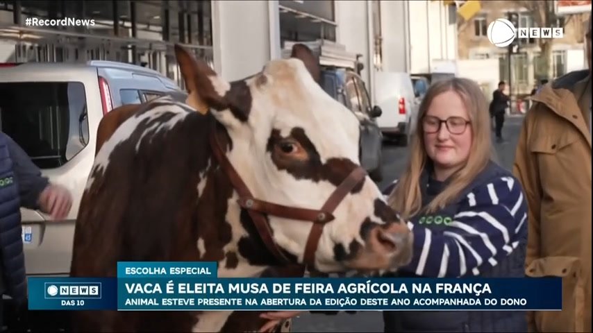 Uma vaca foi escolhida como musa de uma feira agrícola da França. O animal é uma criação de um fazendeiro de 60 anos e esteve presente na abertura dessa edição, que fica liberada para o público geral entre os dias 24 de fevereiro e 3 de março.