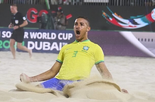 O Brasil é hexacampeão mundial de Beach Soccer. Afinal, neste domingo (25/2), na final da Copa do Mundo-2024, em Dubai, nos Emirados Árabes, os Canarinhos venceram a Itália por 6 a 3. Com isso, a Seleção levantou a taça e recuperou a hegemonia que tinha perdido desde 2017 (a Rússia era a atual campeã). Rodrigo, o melhor do mundo, fez três gols, um deles de bicicleta, o que é bem comum no futebol de praia. Bruno Xavier, Breno e Genovale (contra) fizeram os gols canarinhos. Para os italianos marcaram Fazzini (dois) e Genovali (dois) .