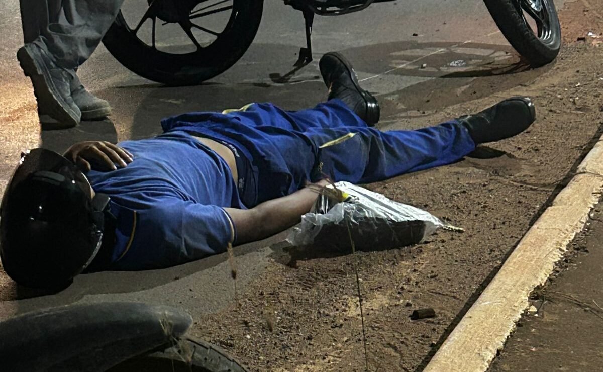 Um acidente entre duas motocicletas foi registrado na noite desta quinta-feira (22), por volta das 18h, na Avenida Emanuel Pinheiro, em Cuiabá. A colisão ocorreu no momento em que uma senhora, que pilotava uma das motos, entrou na avenida para acessar a rotatória e foi atingida na traseira por outro motociclista que trafegava em alta velocidade.