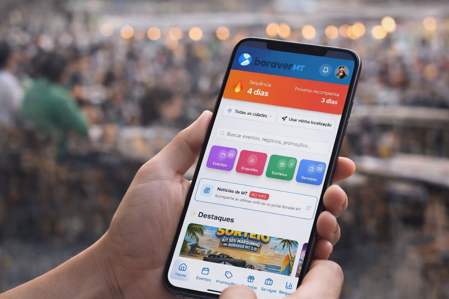 Se você ainda não ouviu falar do Boraver MT 2.0, é só uma questão de tempo. O aplicativo vem ganhando espaço rápido entre os cuiabanos ao reunir, em um só lugar, tudo o que movimenta a cidade: serviços, eventos, interações e, claro, muitos prêmios.