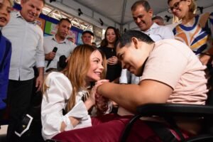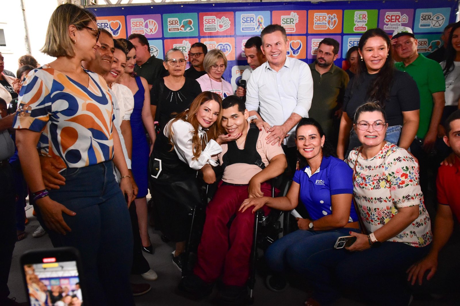 Na sequência, Virginia Mendes realizou a doação de uma cadeira de rodas especial ao senhor Daymon José Gomes dos Reis, acompanhado de sua mãe, Claudete Gomes Pimentel, reforçando mais uma vez a dimensão social em Mato Grosso.