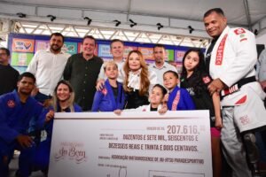 Além das inaugurações, Virginia Mendes realizou a entrega de um cheque do Aniversário do Bem para a equipe da academia Gracie Barra, em mãos ao treinador Elcirley Luz, que se emocionou com o gesto.