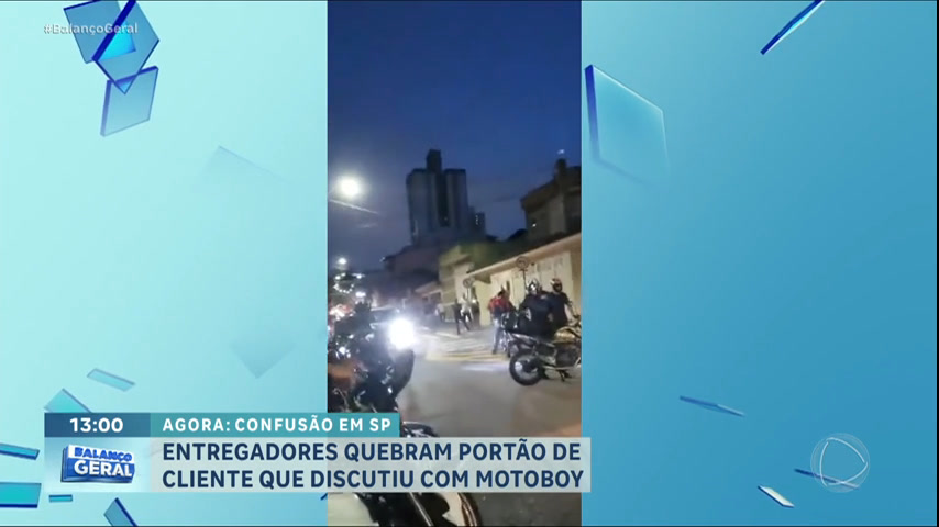 Entregadores se reuniram na frente de uma casa, em Santo André, no ABC Paulista, depois que um motoboy se envolveu em uma confusão com um cliente. A discussão foi por conta de um desentendimento em relação ao pagamento da taxa de entrega. Os colegas do trabalhador foram até o local e iniciaram uma confusão generalizada, com alguns deles chegando a danificar o imóvel.