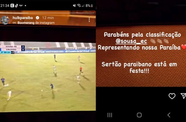 Paraibano de nascimento, o atacante do Galo postou um “story” em sua rede social celebrando a classificação da equipe paraibana: “Parabéns pela classificação, @sousa_ec. Representando nossa paraíba. Sertão paraibano está em festa”.