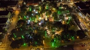 A tradicional Praça Brasil se transformou em palco para inúmeras atrações culturais, incluindo música, dança, teatro e apresentações circenses. Ainda dá tempo das famílias prestigiarem e tirar fotos neste universo que mexe com o imaginário coletivo do Natal, valorizando o espaço público como território de encontro, proposto pelo projeto. Inclusive, fazendo parte do roteiro, três ônibus e três pontos do transporte coletivo estão com decoração natalina.
