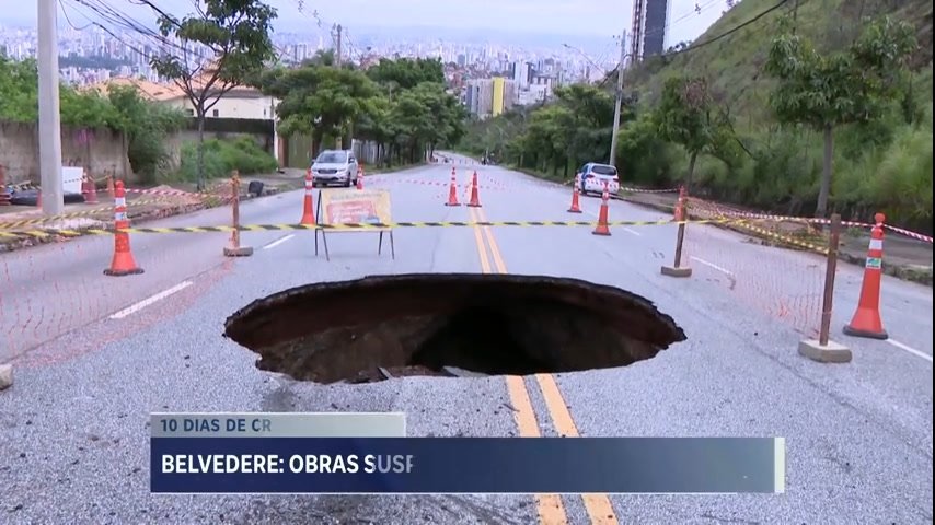Há 10 dias, obras no buraco que se abriu na avenida Presidente Eurico Dutra, no bairro Belvedere, na região centro-sul de Belo Horizonte, tem causado transtornos. As obras que iam durar cerca de duas semanas estão paralisadas, desde que foram interditadas pela Justiça do Trabalho por falta de segurança. A Record Minas esteve no local e conversou com os moradores e mostra como está a situação.