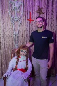 O Poltrona Nerd abriu as portas da Casa do Terror este ano e, além da estrutura criada totalmente do zero com um tema inédito, desta vez baseada na febre bebê reborn, os ambientes externos a casa que funciona simultaneamente e, aos fundos, do bar e burgueria. Durante os atendimentos, também transitam personagens como os palhaços bizarros como Pennywise (It A Coisa) e Art (Terrifier), além da Freira (A Freira).