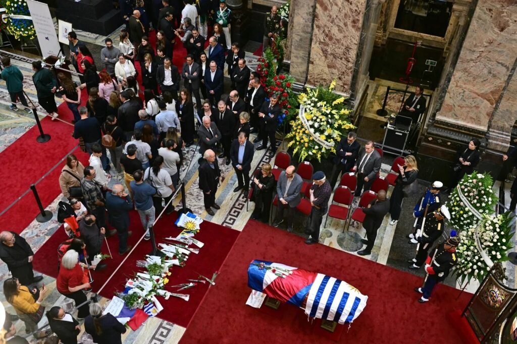 O caixão foi coberto com a bandeira do Uruguai e uma bandeira de um movimento da esquerda local, diante de uma multidão emocionada. Por volta das 10h, o cortejo seguiu pelas ruas de Montevidéu, passando por locais simbólicos como as sedes do Movimento de Libertação Nacional (MLN), do Movimento de Participação Popular (MPP) e da Frente Ampla.